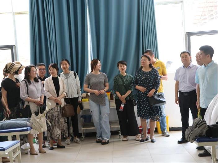 在學院領導的陪同下,專家組一行實地考察了人體形態學實訓室、急救室實訓室、健康評估實訓室、中醫養生保健實訓、中醫針灸推拿實訓室、中醫藥膳實訓室、嬰幼兒保健實訓室等實訓教學場地。學院相關負責人詳細介紹了實訓室的設備功能、教學模式及學生實踐成果,展示了健康管理產業學院“理論+實踐+產業應用”的一體化培養體系。專家組對中醫藥膳等特色項目給予了充分肯定,對當地康養產業有著十分重要的意義。中醫2023級學生展示了推拿按摩實訓課場景,受到了專家組的一致好評。