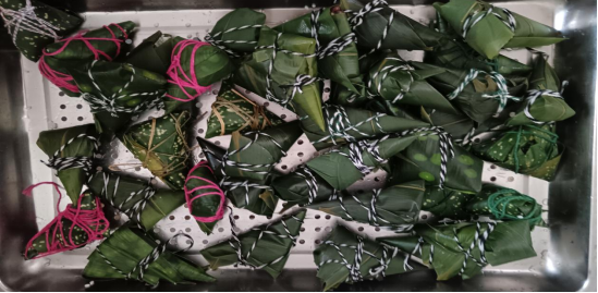 在導員的幫助下,同學們紛紛上手實踐。起初,大家手忙腳亂,有的粽葉折不好漏米,有的餡料放太多包不起來,還有的綁繩子時粽子“散了架”,但誰也沒有氣餒,相互取經、彼此鼓勵。慢慢地,大家漸入佳境,手法越來越嫻熟,一個個形狀規整、小巧玲瓏的粽子誕生了!三角粽棱角分明,枕頭粽敦實可愛,還有同學創意十足,包出了獨具個性的“迷你粽”“超大粽”。各式各樣的粽子擺在一起,宛如一場創意粽子展覽,餡料更是豐富多樣,甜蜜的紅棗、綿密的豆沙、鮮香的鮮肉,光是想想就讓人垂涎欲滴