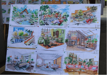 插畫奇幻天地:插畫設(shè)計展區(qū)打開腦洞,走進(jìn)奇妙的插畫世界!精彩故事演繹:一個個可愛的IP形象、一段段引人入勝的插畫故事,用藝術(shù)語言講述著創(chuàng)作者的奇思妙想。 風(fēng)格多元碰撞:清新治愈的水彩插畫、時尚潮流的扁平插畫、充滿韻味的國風(fēng)插畫,風(fēng)格各異,精彩紛呈。通過此次聯(lián)展,同學(xué)們仿佛手繪時光長廊,效果圖表現(xiàn)技法展區(qū)一支畫筆,一張畫紙,勾勒真實(shí)與想象的橋梁!空間光影盛宴,細(xì)膩的建筑透視圖、質(zhì)感滿滿的室內(nèi)效果圖,用馬克筆、水彩重現(xiàn)空間溫度!場景速寫魅力,街頭巷尾、自然景觀的即興創(chuàng)作,捕捉瞬間靈感,感受手繪的獨(dú)特生命力。