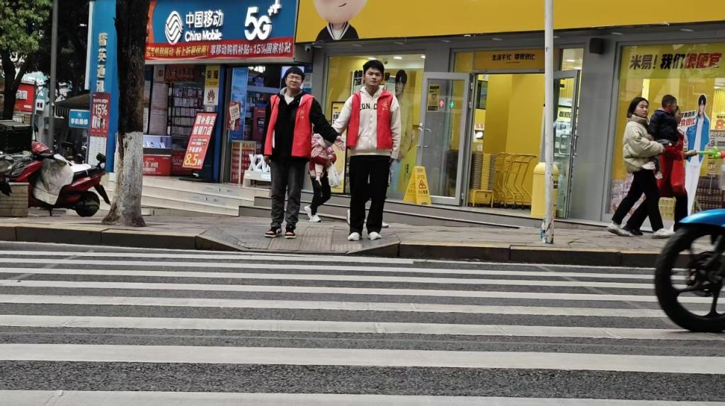 活動當天,學院30余名師生志愿者,分赴商業中心、學校周邊等交通繁忙路段。他們發揮消防機電專業特長,結合安全應急知識、規范非機動車停放,并通過手勢引導、擴音器提示等方式勸導行人遵守交規。針對老年人和兒童群體,志愿者們還貼心設計“安全過街護送”服務,獲得市民頻頻點贊。