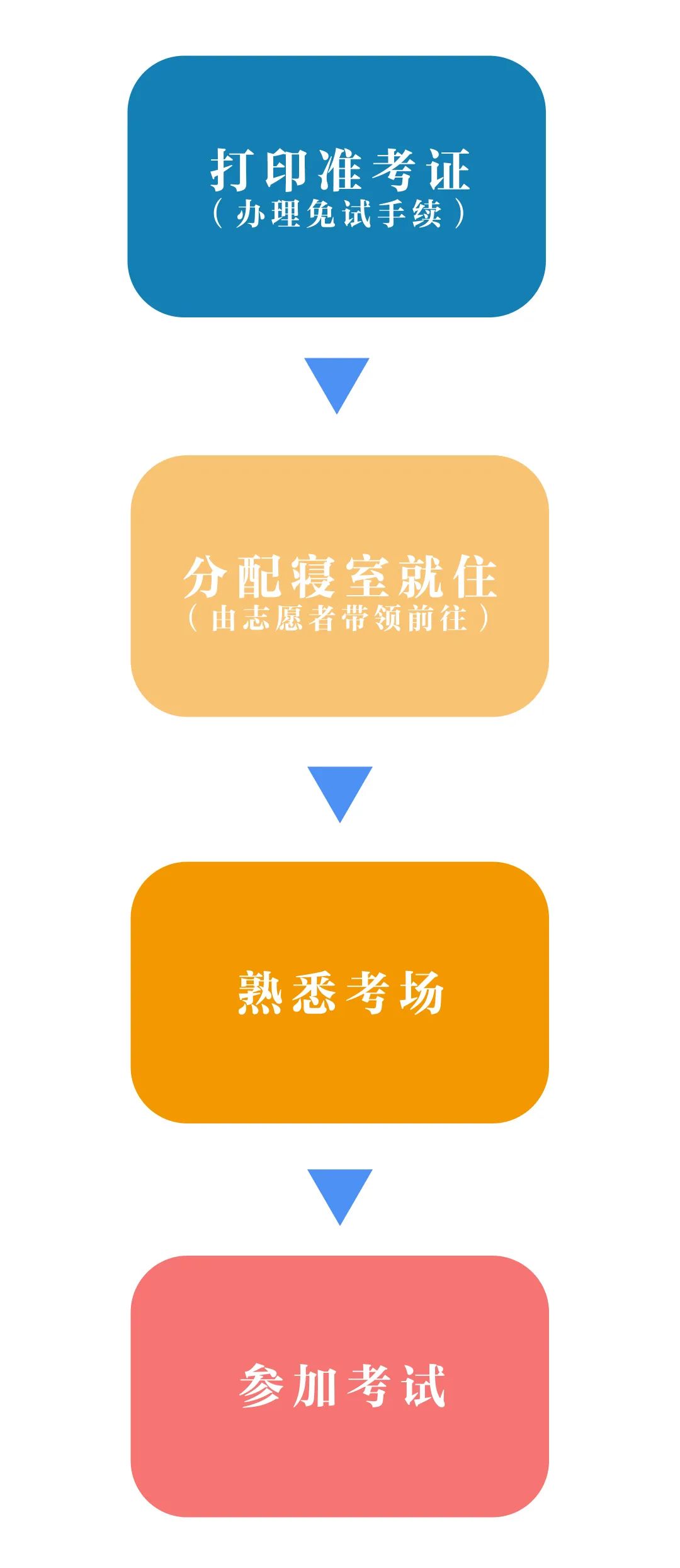 學校為每位到校考生準備住宿,在打印準考證后到指導老師處安排寢室就住。