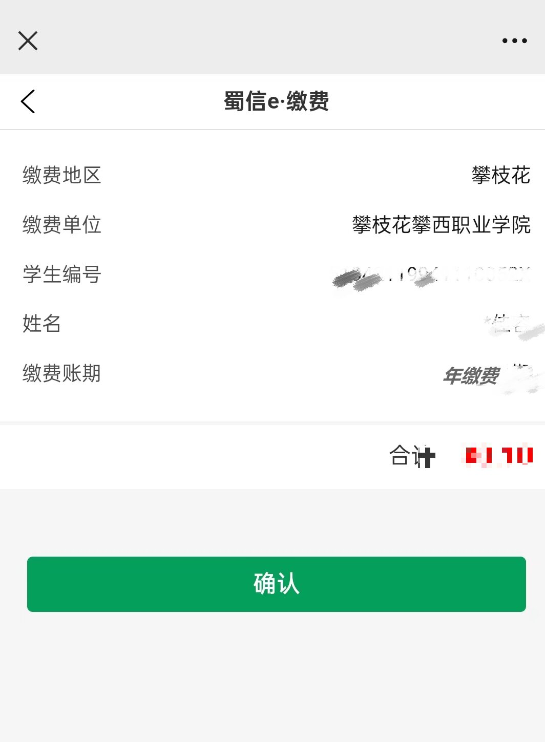 核實身份證號、姓名、金額等信息,確認無誤后點擊確認,繳費成功,截圖保存繳費記錄。